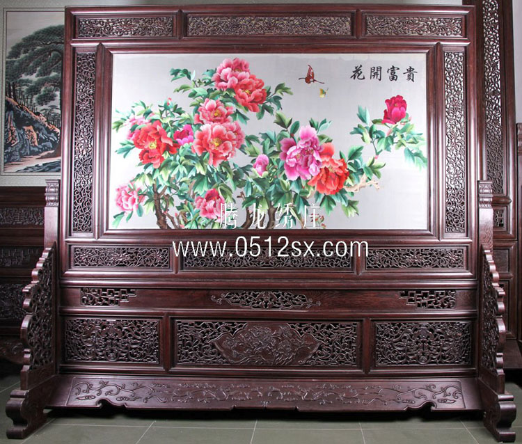【苏绣绣品说明】该刺绣为苏绣隔断屏风,该刺绣由镇湖绣娘精心刺绣而成,绝非苏北绣和山东等其他外地绣。所用丝线均为8/16的苏绣专用丝线,比头发丝还细,图案为牡丹图,寓意深刻,图案活灵活现。是您家居装修、办公大厅的理想装修产品,本苏绣屏风最适合家庭玄关、隔断设计。