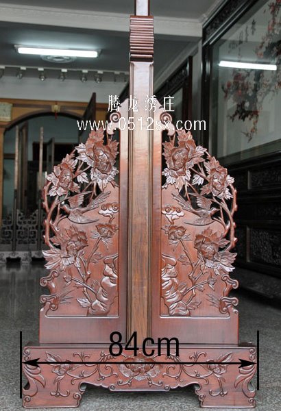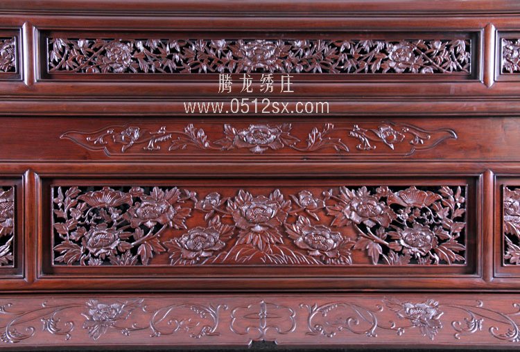 【苏绣木架说明】而该苏绣的木架全部由高级木匠用进口红木打造而成,全部由木工采用纯手工雕刻,做工是极为精细的,不光是从选材还是雕刻工艺都是上上品,雕刻的凤穿牡丹与刺绣图案极为匹配。该木架的做工是非常精细的,可以从细节图中看到。目前市场上采用红木做木架的,是非常少见的。