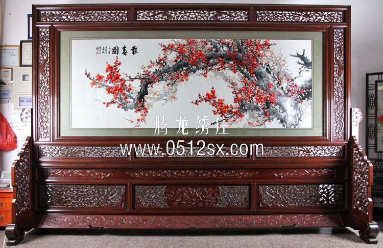【苏绣绣品说明】该刺绣为苏绣隔断屏风,该刺绣由镇湖绣娘精心刺绣而成,绝非苏北绣和山东等其他外地绣。所用丝线均为2-4丝的苏绣专用丝线,比头发丝还细,此副报喜图的做工是极为精细,是由4个镇湖绣娘历时12月呕心之作,此副报喜图已经是梅花图案中最细腻的作品了。梅花的寓意深刻,图案活灵活现。是您家居装修、办公大厅的理想装修产品,本苏绣屏风最适合办公楼大厅装饰、背景墙设计。